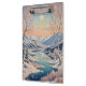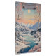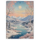 Surprisingly: Ice doesn't always freeze solid! Tiny air bubbles and impurities can create stunning patterns and textures within the frozen surface. This serene design captures the peaceful beauty of a winter landscape, featuring a tranquil lake surrounded by snow-covered trees and majestic mountains. The setting sun casts a warm glow over the scene, creating a breathtaking vista that evokes a sense of calm and wonder. Perfect for adding a touch of winter magic to any project.