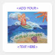 The painting shows a glimmering orange surfing angel on a blue ocean with a sparkling sun. Seafoam washes up on the sand surrounding the words "Wipe Out Cancer". There is a pink seashell on the beach. The painting was rendered in acrylic and sprinkled with glitter for texture and shine. The image was converted into cards that the team could use for the luminaries. Make custom decal stickers to show cancer awareness and support!