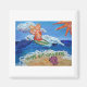 The painting was made for a group fundraising for the American Cancer Society's "Relay for Life". The booth theme was luau of "Wipe Out Cancer". The painting shows a glimmering orange surfing angel on a blue ocean with a sparkling sun. Sea foam washes up on the sand surrounding the words "Wipe Out Cancer". There is a pink sea shell on the beach. The painting was rendered in acrylic and sprinkled with glitter for texture and shine. The image was converted into cards that the team could use for the luminarias.