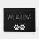 Dog lovers doormat "wipe your paws". with white paw prints.