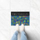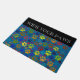 A colourful doormat for cat owners to give visitors paws for thought with a pattern of cat paw prints in lots of different colours including red, orange, green, yellow and brown, on a blue background. Above is the order 'Wipe Your Paws' in white lettering on a black panel. You can change the slogan, font and blue background colour to suit with the customise button. The door mat would be the perfect gift for a new home or housewarming for feline loving friends and family.