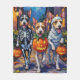 Adorable Wire Fox Terriers dressed in playful Halloween costumes carry pumpkin buckets while trick-or-treating under the moonlit sky. This festive design highlights the breed’s wiry coat, alert expression, and energetic personality, perfectly capturing the spooky yet fun atmosphere of Halloween night. A cheerful and lively celebration for dog lovers and Halloween fans alike.
