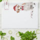 A paws-itively funny gift, a Wire Haired Jack Russell Terrier is ready and waiting for Christmas! Muddy paw prints are seen around the dog who is wearing a humourous red santa hat and bow tie.