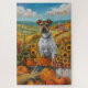 Celebrate the beauty of fall with this vibrant painting of a dog sitting beside a bountiful Thanksgiving harvest. The rich autumn colours of pumpkins, sunflowers, and rustic farmhouse scenery create a warm and inviting atmosphere, perfect for any dog lover's seasonal décor.