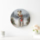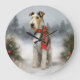Wirefox Terrier Dog in Snow Christmas Large Clock