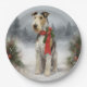 Wirefox Terrier Dog in Snow Christmas Paper Plate