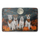 Unleash the spooky spirit with this eerie Halloween design featuring a pack of dogs under a dark, moonlit sky, surrounded by flying bats and glowing pumpkins. Perfect for those who love a touch of frightful fun with their furry friends!
