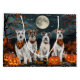 Unleash the spooky spirit with this eerie Halloween design featuring a pack of dogs under a dark, moonlit sky, surrounded by flying bats and glowing pumpkins. Perfect for those who love a touch of frightful fun with their furry friends!