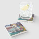 The coasters are gorgeous, a quality feel and heavy weight. They look like a precious archeological find. A rustic stone juxtaposed with a modern floral black and white print. I like the way the print goes slightly imperfect on the cut stone edges giving them a kind-of natural beauty.