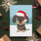 Adorable Wirehaired Dachshund wearing a Santa hat in the winter snow. Back text: Happy Pawlidays. Wishing you and your furry family members a joyful holiday season. Text can be customised with your own message. Send well wishes this Christmas while also keeping your business top of mind. This cute teckel dog postcard is perfect for veterinarians, dog walkers, pet groomers, doggy daycare and more!