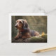 Introducing our charming postcard featuring an adorable AI image of a wirehaired dachshund nestled among the trees in a serene forest setting. This beautiful design is sure to make any dachshund lover happy. The postcard is accentuated by the slogan "Life is better with a Wirehaired Dachshund by your side", a sentiment that any proud dachshund owner can relate to.