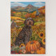 Celebrate the beauty of fall with this vibrant painting of a dog sitting beside a bountiful Thanksgiving harvest. The rich autumn colours of pumpkins, sunflowers, and rustic farmhouse scenery create a warm and inviting atmosphere, perfect for any dog lover's seasonal décor.