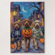 Adorable Wirehaired Pointing Griffons dressed in playful Halloween costumes carry pumpkin buckets while trick-or-treating under the moonlit sky. This festive design highlights the breed’s shaggy coat, soulful eyes, and friendly personality, perfectly capturing the spooky yet fun atmosphere of Halloween night. A heartwarming celebration for dog lovers and Halloween fans alike.