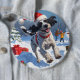 A spirited Wirehaired Pointing Griffon runs joyfully through the snowy winter scene, wearing a festive red Christmas hat. This lively design highlights the breed’s shaggy coat, hunting heritage, and affectionate personality while capturing the warmth and joy of the holiday season. A heartwarming winter moment full of festive charm.