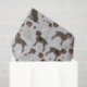 Cute wirehaired Pointing Griffon dogs sit and stand with paw prints and dog bones pattern on a coloured background.