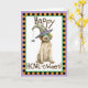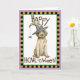 Send Halloween greetings with this card of a cute Griffon puppy wearing a green mask and a witch hat decorated with a silly spider. Great for kids of all ages who love Wirehaired Pointing Griffons and Halloween. Have a Happy HOWL-oween!
