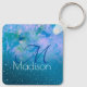 Chic blue pink ombre glitter monogram Metal keychain. Girly, trendy and modern keychain. It makes the perfect sweet 16 birthday, wedding, bridal shower, anniversary, baby shower or bachelorette party gift for someone that loves glam luxury and chic styles. Whether for valentines day, Christmas or any occasion in general this metal keychain will make a great gift idea for any girl or woman who loves modern sparkly elegance. PLEASE NOTE: These are flat printed graphics - no real glitter, jewels or raised parts.