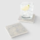 The coasters are gorgeous, a quality feel and heavy weight. They look like a precious archeological find. A rustic stone juxtaposed with a modern floral black and white print. I like the way the print goes slightly imperfect on the cut stone edges giving them a kind-of natural beauty.