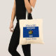 The design on this bag is simply the flag of Wisconsin set between the state name and nickname. Choose from several styles.