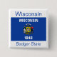 An authentic high quality image of the flag of Wisconsin set between the state name and nickname over a light flag-colour background.