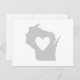 Keeping in touch with a Wisconsinite you love has never been easier then with a Wisconsin state shape filled in with solid grey background and a heart cutout postcard.