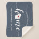 Show some home state pride with this cute rustic blue throw blanket featuring "home" in white calligraphy script lettering with a silhouette map of the state of Wisconsin standing in for the letter "O." A red heart illustration inside the state map completes the design; you can change the position of the heart to your home city by opening the design tool and dragging the heart shape to your favorite spot. Personalize with your home city, family name and year established to create a perfect and memorable housewarming gift or addition to your new home.