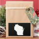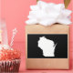 The shape of the state of Wisconsin in white on a black background. You can change the background colour and add a text message in a bright font to personalise a custom souvenir.