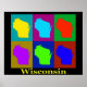 Colourful Pop Art map silhouettes of the state of Wisconsin.