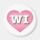 This magnet features a cool pink heart with a white-washed centre containing the bold, white, upper-case letters WI, the official abbreviation for Wisconsin, the badger state.
