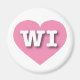 This magnet features a calm, cool pink heart containing the bold, white, upper case letters WI, the official abbreviation for Wisconsin, the badger state.
