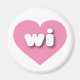 This magnet features a calm, cool pink heart containing the bold, white, rounded, lower case letters wi, a playful abbreviation for Wisconsin, the badger state.