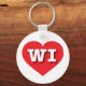 This keychain features a vibrant red heart containing the bold, white, upper case letters WI, the official abbreviation for Wisconsin, the badger state.