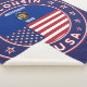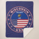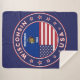 Badge of Wisconsin with flag of Wisconsin and flag of USA colours, rounded shape.