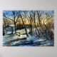 Wisconsin winter sunset in the woods, watercolor by Shira B