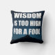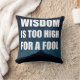 Bold white typography of the quote “Wisdom Is Too High for a Fool” set over a starry night sky and mountain silhouette. Modern, minimalist throw pillow for living rooms, studies, dorms, and reading nooks. Inspirational home decor, proverb-inspired design, navy/black palette, high-contrast text, great gift for graduates, teachers, and thinkers.