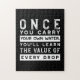 Embrace the wisdom of self-reliance with our 'Once You Carry Your Own Water, You'll Learn the Value of Every Drop' design. This impactful typography artwork, now with a fresh colour palette, is perfect for those who appreciate life lessons and motivational quotes. Ideal for t-shirts, home decor, and accessories, this design adds a touch of inspiration and meaning to any collection.