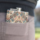 The flask itself is fine. It’s a cheap flask, obviously bought in bulk, however am prepared to overlook that. Given that it is a personalized item, I would have liked to have seen gift boxing instead of the generic packaging. Terrible printing, and/or quality. It’s a cheap, tacky vinyl. It is not cut straight and is also applied in a way that it is overhanging the bottom, causing the glue to catch on items and it will eventually roll and tear, damaging the wrap.