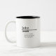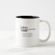 Featuring a sleek design adorned with the name "John" and a personalised definition, this mug adds a touch of individuality to your beverage experience. Whether you're savouring your favourite coffee blend or indulging in a soothing cup of tea, this mug serves as a constant reminder of your unique identity.