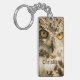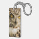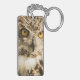 Close-up of a white and brown owl looking at you with yellow eyes. Template for Your name or text on front.