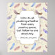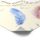 A typography design with an inspirational motivational message. The quote says: listen to all, plucking a feather from every passing goose, but, follow no one absolutely. The background is a watercolor feather pattern with a cream background. The quotation is set on a frame with a gold gradient border and a white centre.