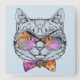 This design features a cute, cool cat wearing rainbow glasses and a polka dotted bow tie.