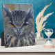 The predatory bird of wisdom stares intently at his prey before the strike.