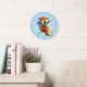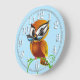 A wise owl looks over his spectacles on this whimsical clock design with white bold clock numbers over a light blue background. It makes a nice choice for a child's room, nursery, library or classroom.