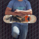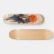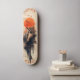 This unique skateboard design showcases a wise owl perched against a striking, fiery moon, capturing the mysterious allure of the night. Using a palette of warm beige, intense orange, and shadowy black, this artwork draws inspiration from vintage 1950s travel posters, bringing a blend of nostalgia and wild beauty to the skateboarding scene. Ideal for skaters who resonate with themes of wisdom, independence, and the untamed spirit of nature, this design embodies the essence of quiet strength and observation. Perfect for those who seek both elegance and adventure.
