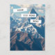 Pretty mountain themed postcard to keep in touch with someone you are missing. Pretty mountain peaks on a blue cloudy day.