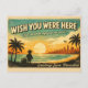 Send a little sunshine with a side of humor. This vintage-inspired travel postcard features a warm sunset beach scene, palm trees, and a nostalgic skyline, paired with the playful message “Wish You Were Here (But I’m kinda enjoying the quiet)”. Designed in a classic mid-century travel poster style, it captures the carefree spirit of a getaway with a modern, witty twist.