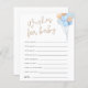 Celebrate the mum-to-be with this cute and simple modern baby shower wishes for baby advice card featuring a watercolor drawing of tan, blue and grey balloons.