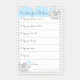 Baby shower game, wishes for baby with gingham elephant theme in blue. Easy peel and stick post it notes can stick to a board or wall after filled out by guests.
