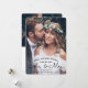 Send joyful holiday wishes as a new Mr. & Mrs! Celebrate marriage as newlyweds and share two of your favourite wedding pictures with a stylish custom photo holiday card. All text on this template is simple to personalise to include any wording, such as Merry and Married, Happy Holidays, Seasons Greetings, New Year Cheers etc. Modify or delete message on back to use as wedding thank you and Christmas card combined. (IMAGE PLACEMENT TIP: An easy way to centre a picture exactly how you want is to crop it before uploading to the Zazzle website.) The modern minimalist black and white design features trendy handwritten style script typography overlay and 2 photos of your choice. Family and friends will love displaying this elegant customised card. Cheers to merrily ever after!