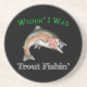 Perfect gift for the avid trout angler, fly fisherman or fly fisherwoman in your life with a full colour and detailed image of a powerful leaping rainbow trout with the text Wishin I Was Trout Fishin.